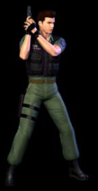 Descrição: Personagem principal na trama. Tem como vantagem sua alta resistência física, podendo aguentar mais ataques de inimigos do que Jill . Chris é o típico "cara durão" que toda equipe tem. Ele pode transportar até seis itens e começa apenas com uma faca. Escolhendo Chris, a dificuladade In-game será no nível Hard (Difícil). Ele precisa das "Small Keys" para destravar portas onde Jill pode simplesmente usar o seu "lockpick" (grampo usado para destrancar portas). O personagem de apoio de Chris é Rebecca Chambers, que poderá se tornar essencialmente uma assistente passiva ao jogador.