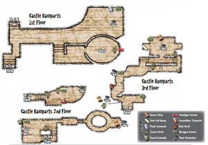 Castle: Neste cenário, os inimigos atacarão em grandes hordas, e alguns estarão armados, portando escudos ou com elmos para proteção. Tente não ficar parado por muito tempo em um lugar só, pois os Zealots têm como principal estratégia cercar o personagem, agarrando-o por trás. Essa tática é principalmente eficaz nos corredores apertados que levam às áreas superiores do castelo.