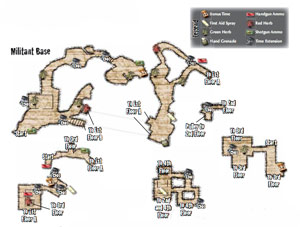 Commando Island: Uma das arenas mais confusas, com vários níveis, passagens e túneis escondidos. Por ser um cenário vasto, é necessária uma boa administração dos bônus de tempo para obter um bom resultado. Os inimigos demorarão a aparecer logo de início, mas depois aparecerão em grupos de dois ou três por vez, atacando por todos os lados e armados com escudos ou bastões de choque. Nenhum espaço é seguro, por isso, corra bastante e atire sem parar, ficando atento ao recarregar suas armas.